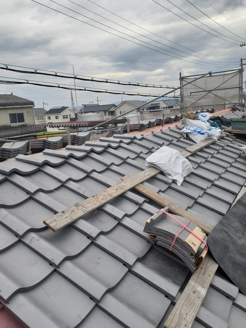 瓦解体後、ルーフィングを張り、不陸調整し瓦を積んでいきます(^^)/