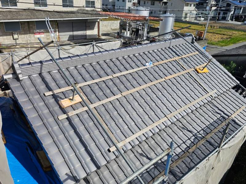葛城市S様 屋根・外壁塗装工事の屋根葺き替え工事をしています。