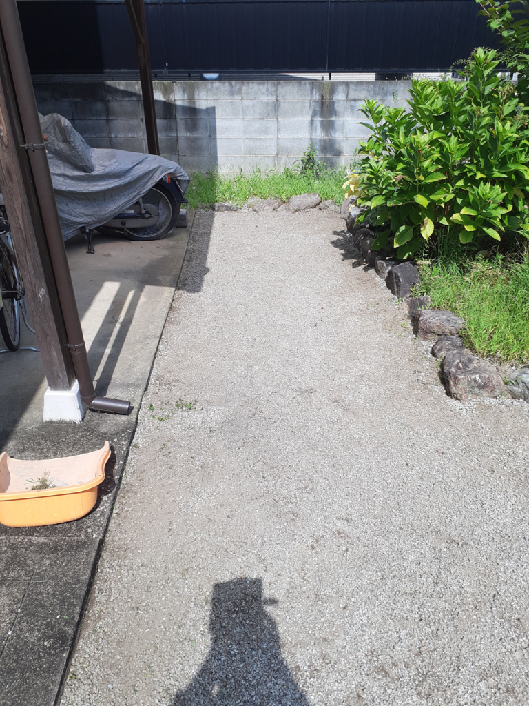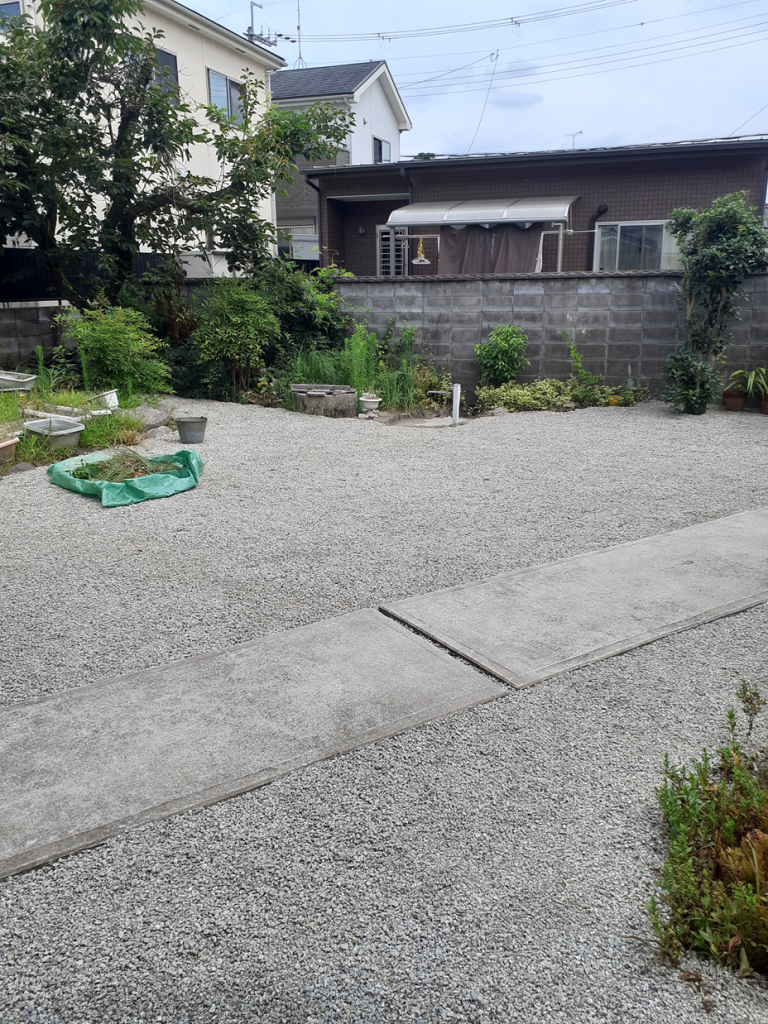 | 工事内容 | 防草シート・砂利敷き・排水工事 |