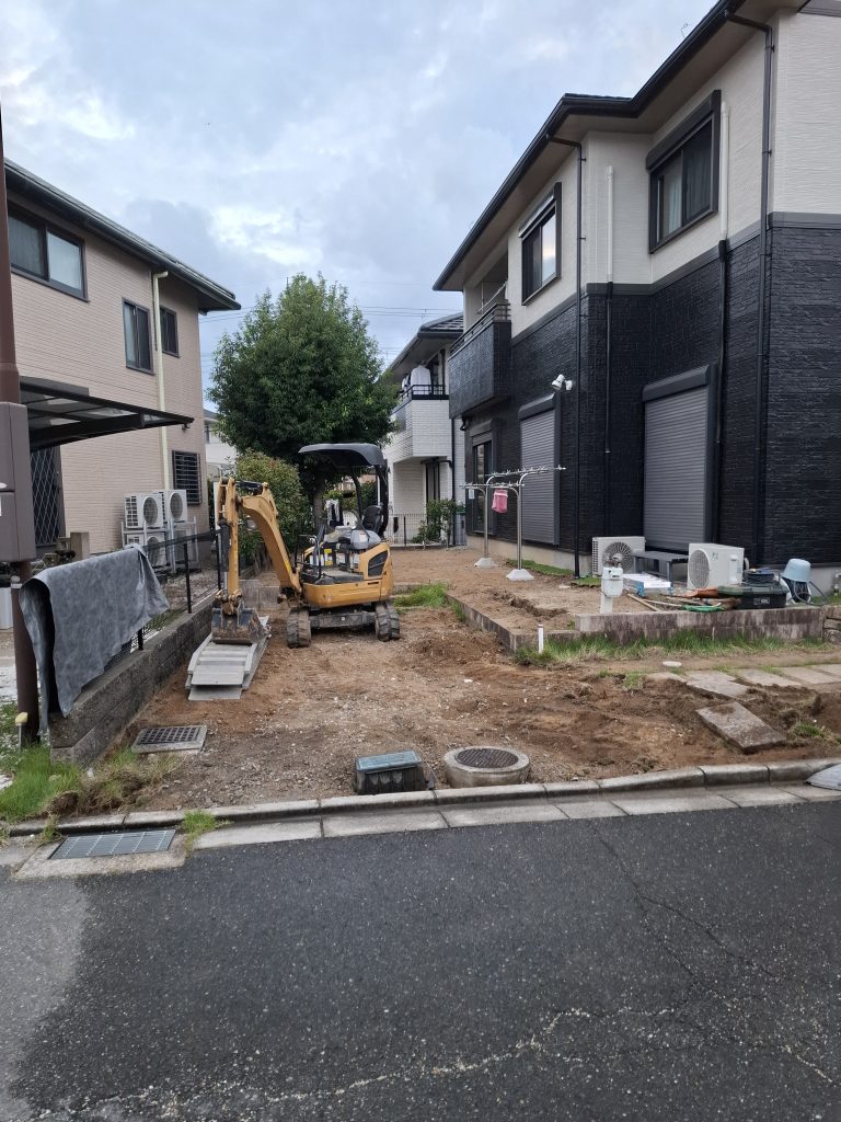 ホームページからのお問い合わせを頂き、バイクを置きたいと駐車場拡張工事やエクステリア工事をさせて頂きました。