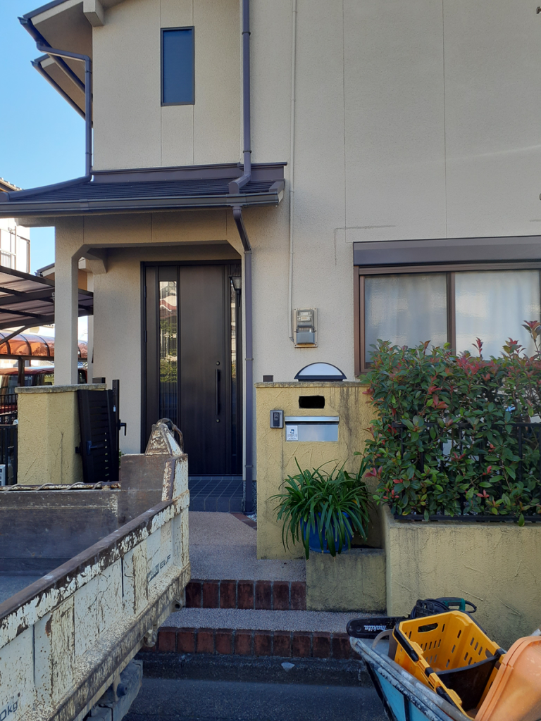 庭の雑草の手入れが大変だとご相談を受けました。また門廻りなどスッキリしてポストの取替えや門の塗装をすることで家の雰囲気を変えました。お客様も喜んでくれました(^^)/