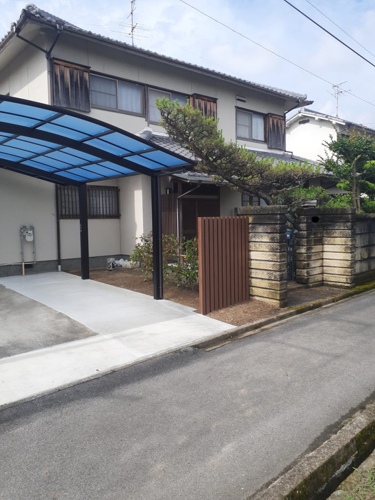 | 工事内容 | 駐車場増設・玄関廻り、カーポート工事、、土間打ち、植栽 |